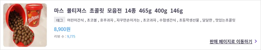 현재 아이템스카우트에 예시 상품으로 등록되어 있는 몰티져스 초콜릿 상품을 예로 들어보겠습니다.