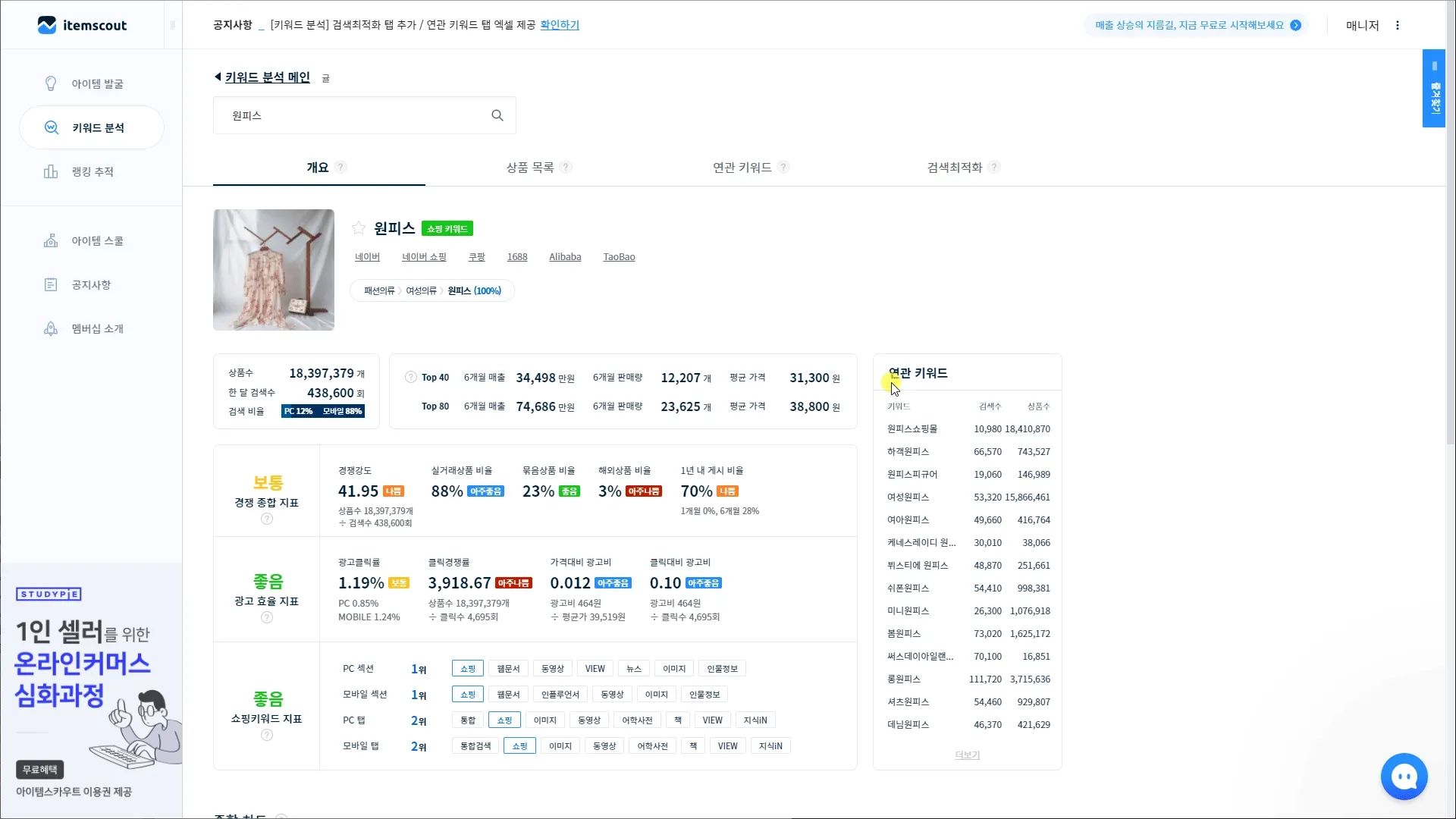 키워드 하단의 도/소매 쇼핑 플랫폼 링크를 클릭하면, 현재의 키워드를 해당 쇼핑 플랫폼에서 바로 검색할 수 있습니다.