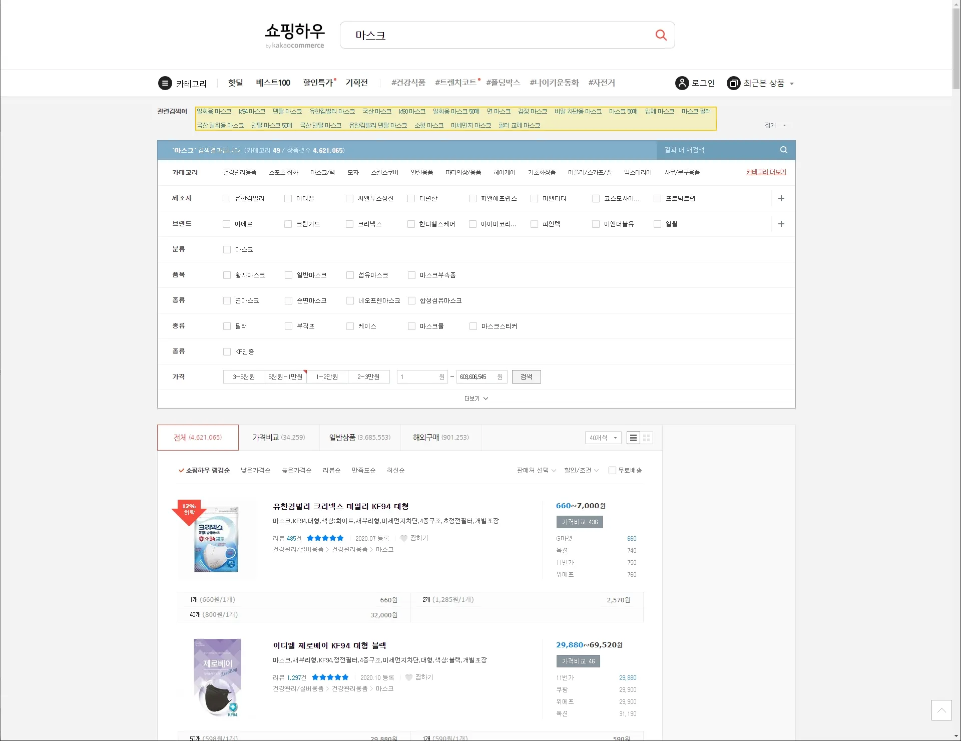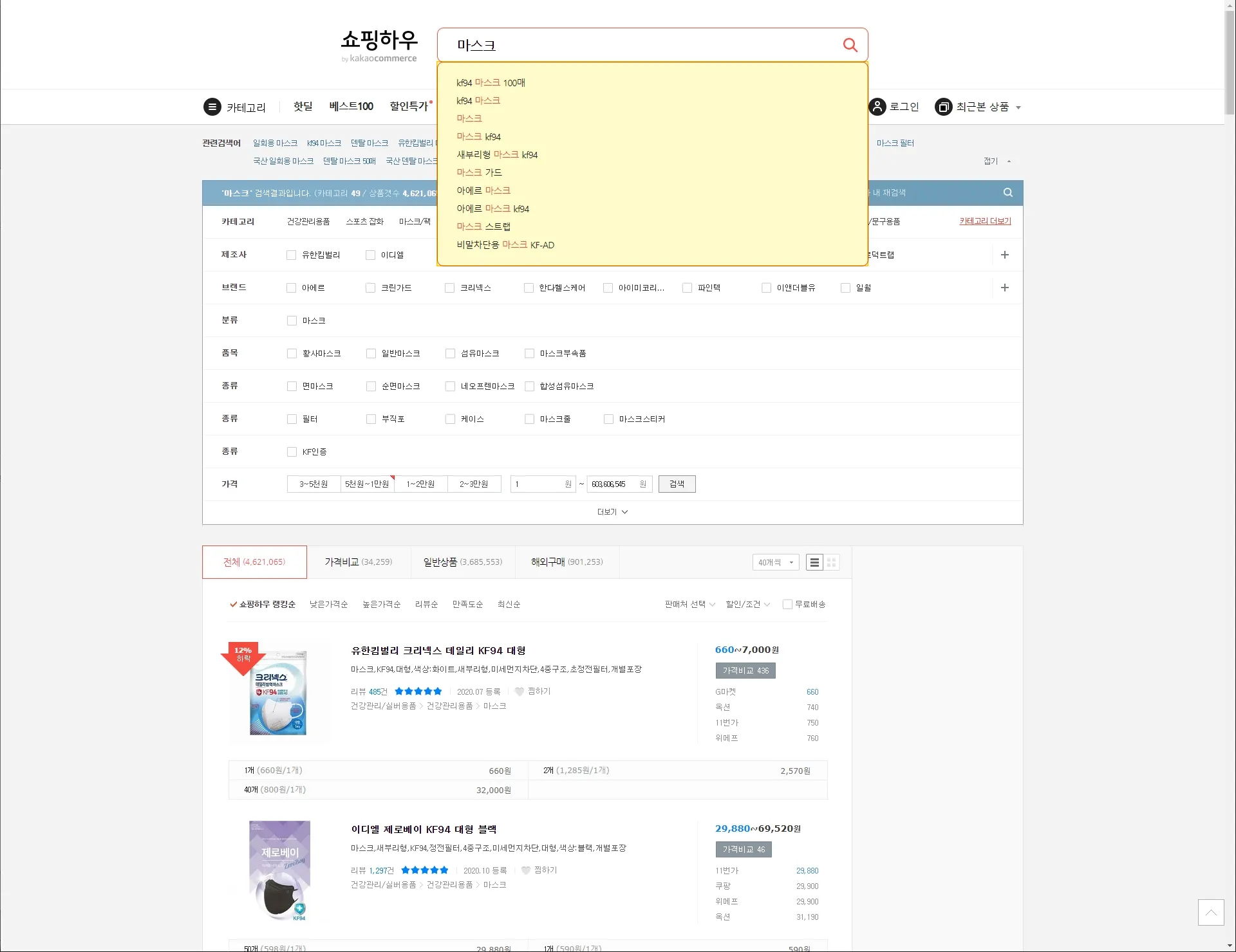 카카오 쇼핑하우에서 검색 시, 검색창에 자동 완성되는 검색어입니다.