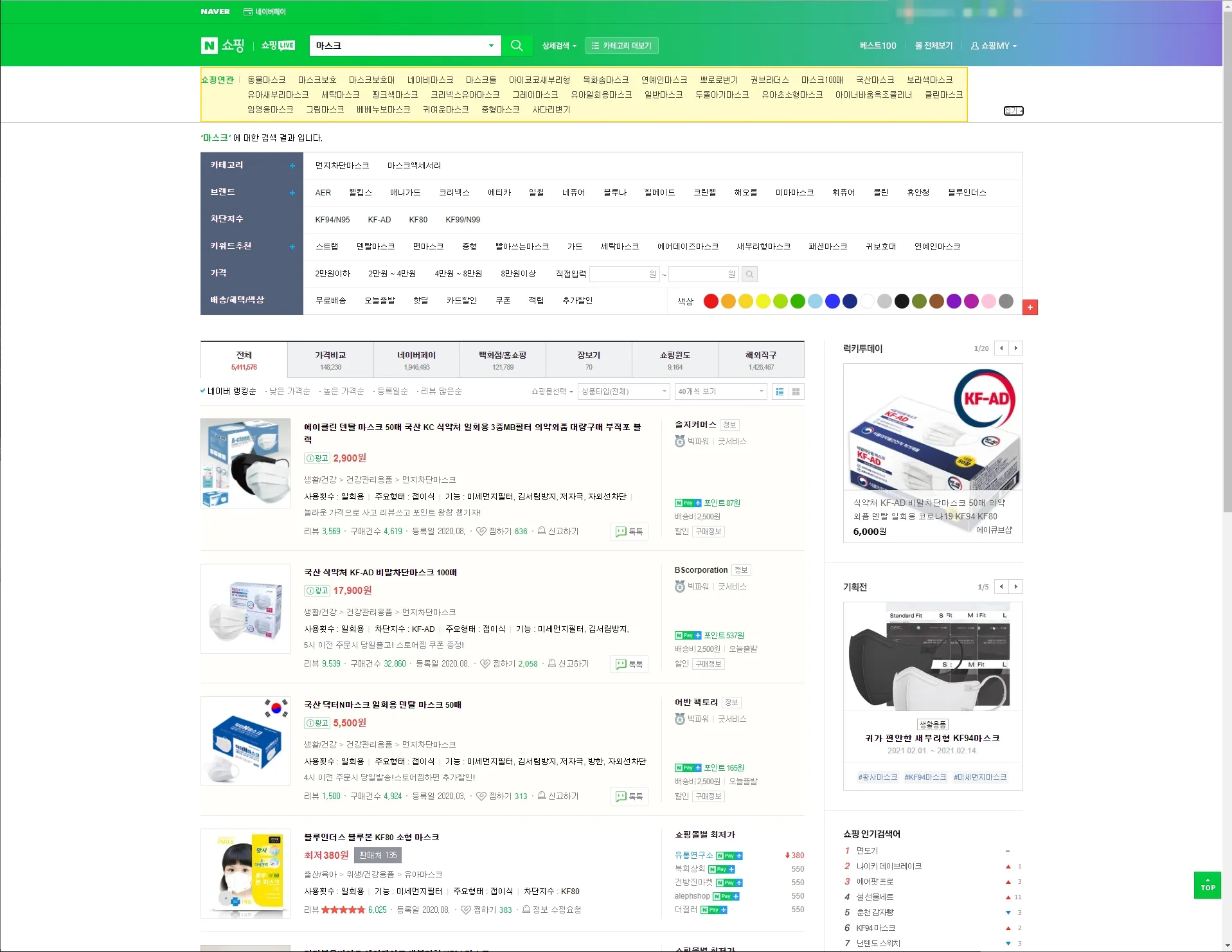 네이버 쇼핑에서 검색 시, 검색창에 자동 완성되는 검색어입니다.